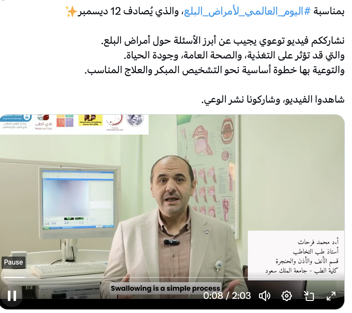 الملف الإعلامي افتتح سعادة عميد كلية الطب أ.د. صالح المحسن فعالية اليوم العالمي لأمراض البلع في مستشفى الملك خالد الجامعي
